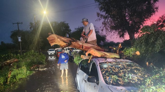 En Cuisillos se vinieron abajo dos árboles, uno de ellos sobre un vehículo que transitaba por la zona, se reporta una persona lesionada con posible fractura en su brazo derecho.